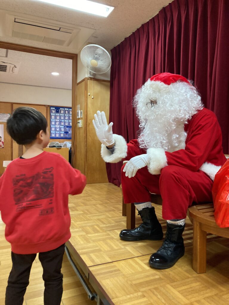 ドキドキしながらサンタさんに質問をしたり、ハイタッチ。