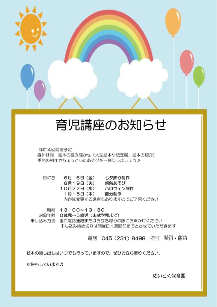 【めいとく保育園】育児講座のお知らせ