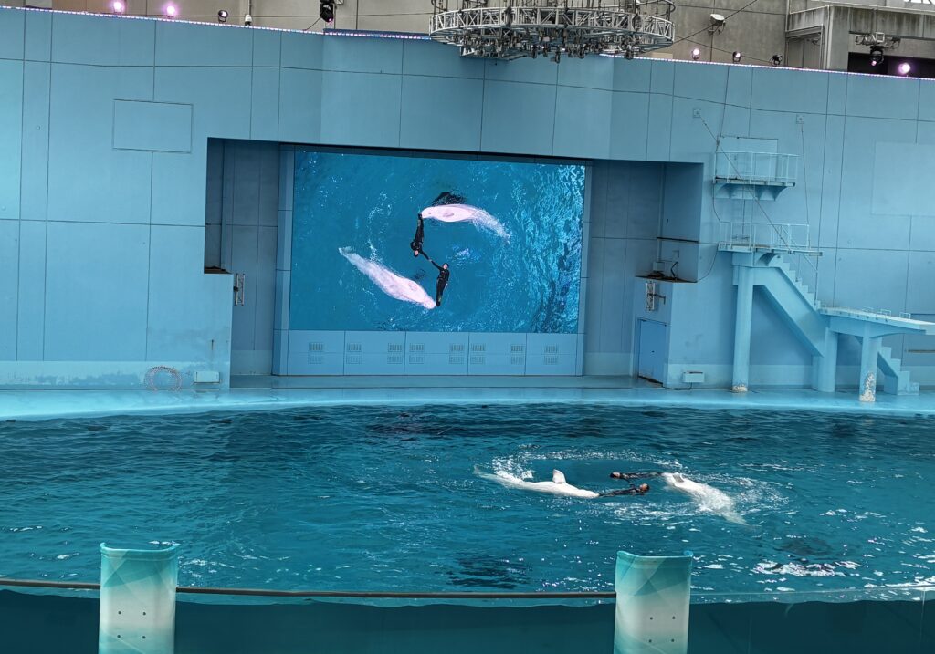 まずはイルカやアシカが登場するショーを鑑賞!歓声や拍手をしながら楽しんでいました。