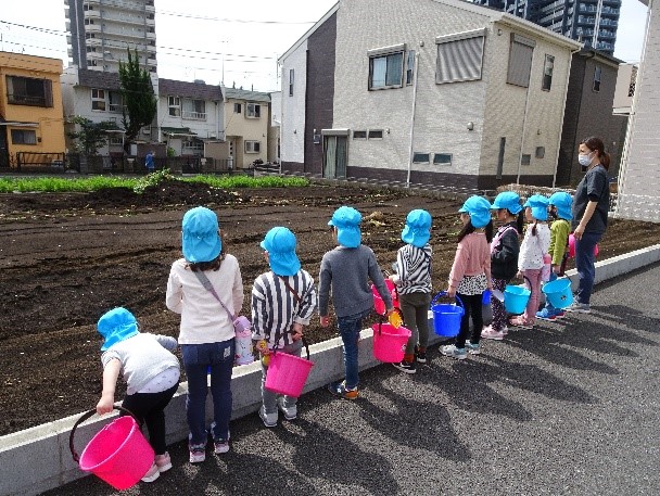散歩時に水筒が持てる様になって嬉しい子ども達です。