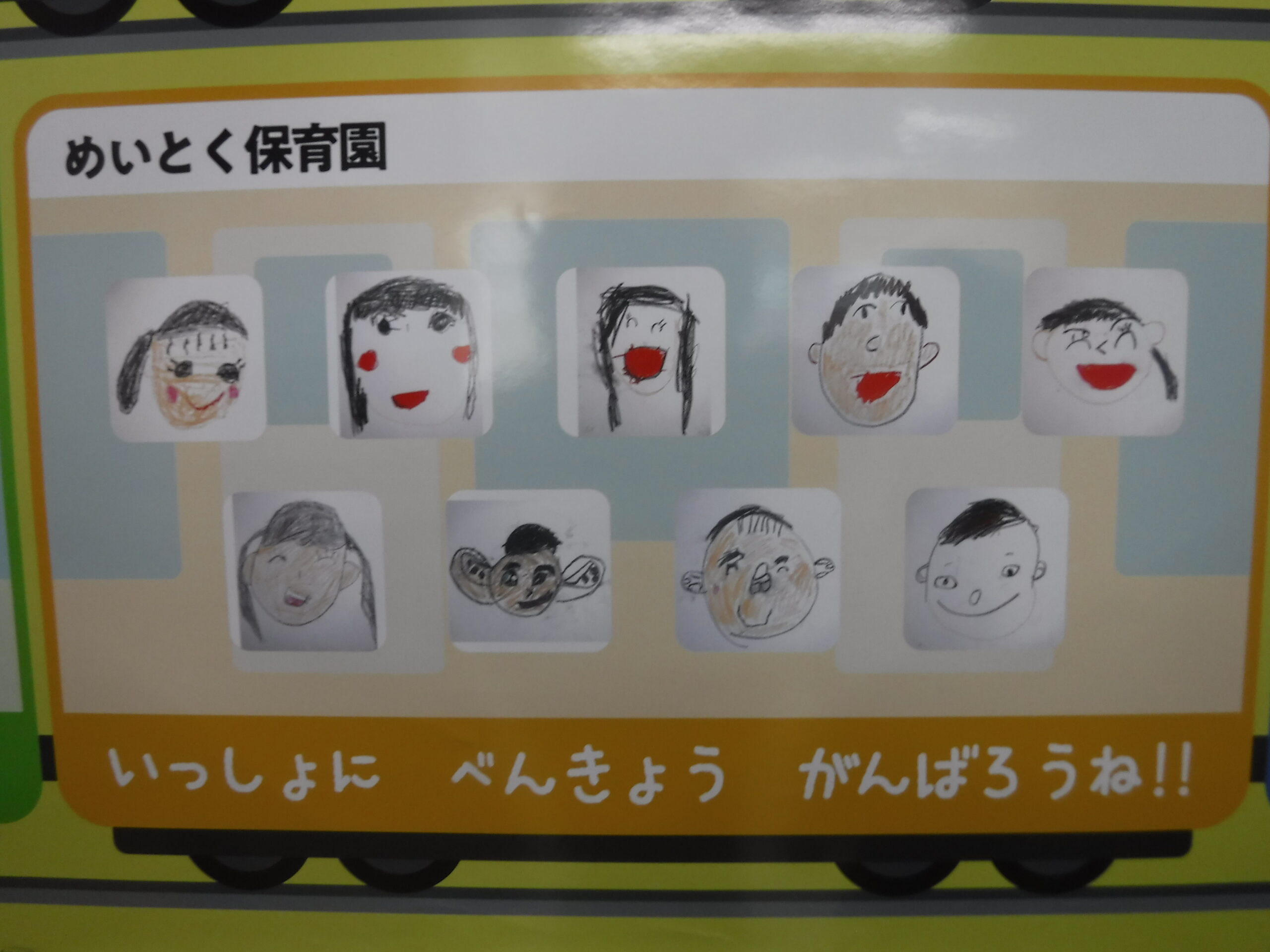 南太田駅にポスターを見にいくと、自分の似顔絵だけでなく他園の友だちの似顔絵にも注目し、就学先の学校で会えることを楽しみする様子もみられました。